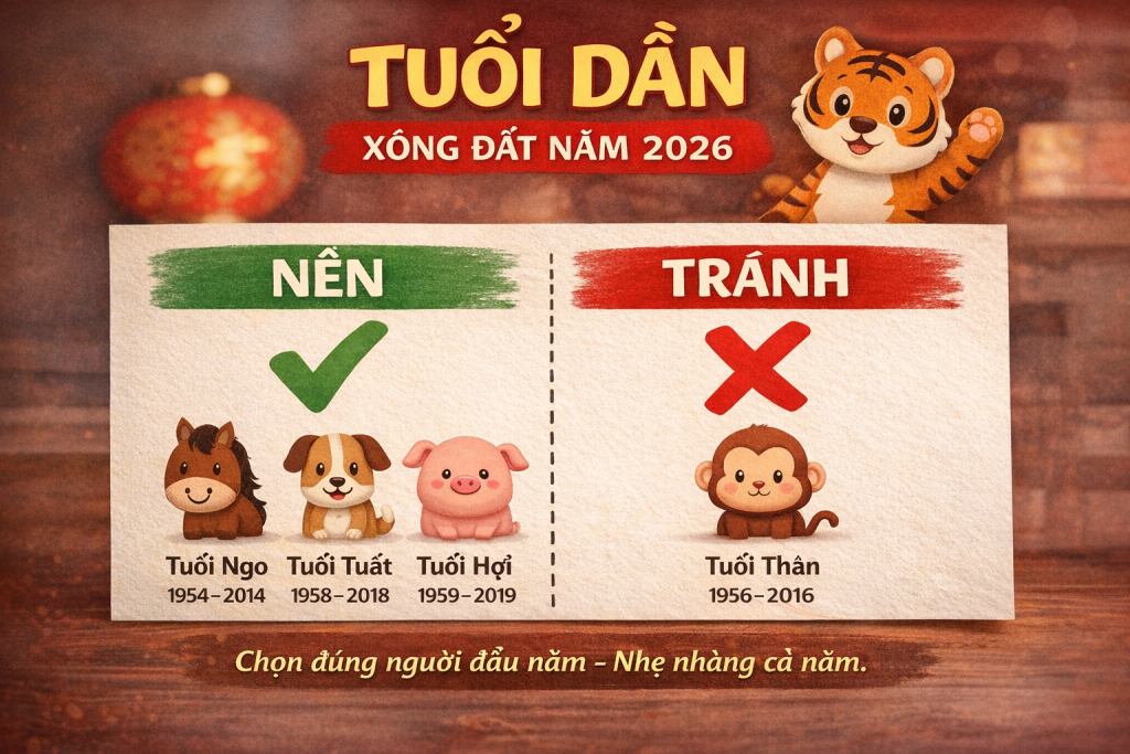Ưu tiên người tuổi Ngọ – Tuất – Hợi, tránh tuổi Thân, sẽ giúp năm mới bắt đầu nhẹ nhàng và thuận lợi hơn.